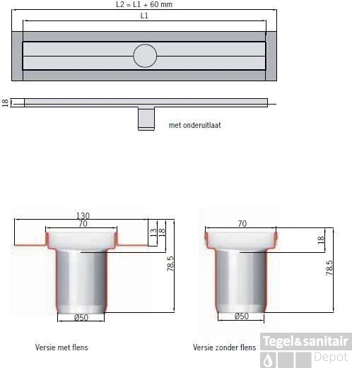 Douchegoot 78,5×7 h=1,8 met vloerflens