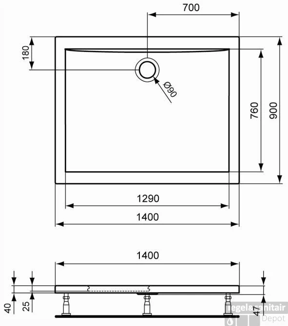 B&W-luxery Redro douchebak 140x90x4cm wit