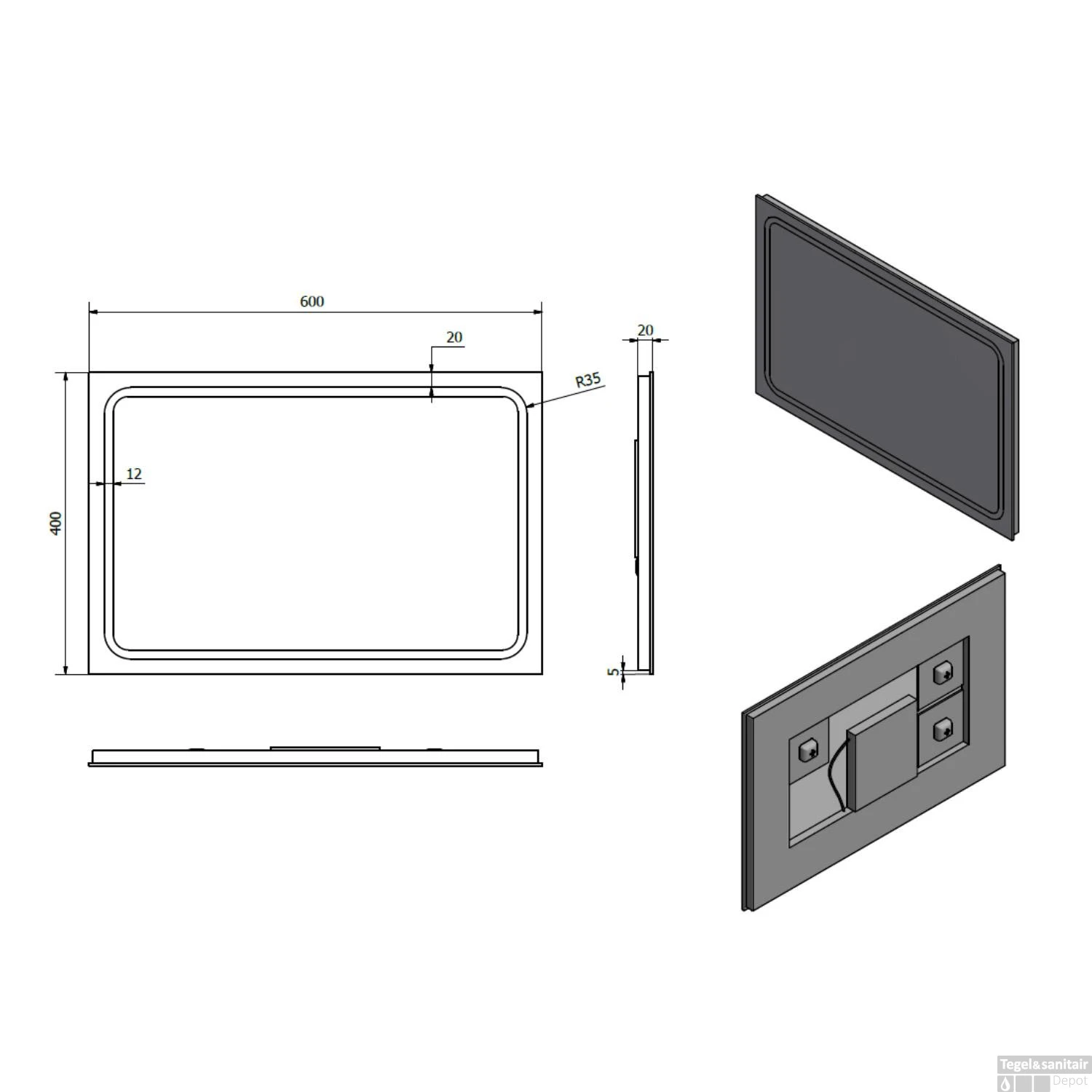 Specificaties Badkamerspiegel 40×60 cm LED-Strips Sapho Gemini II: