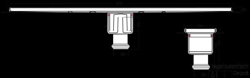 Berg Van Den Douchegoot 90 Cm. Met Flens Onder Uitlaat 50 Mm. Rvs