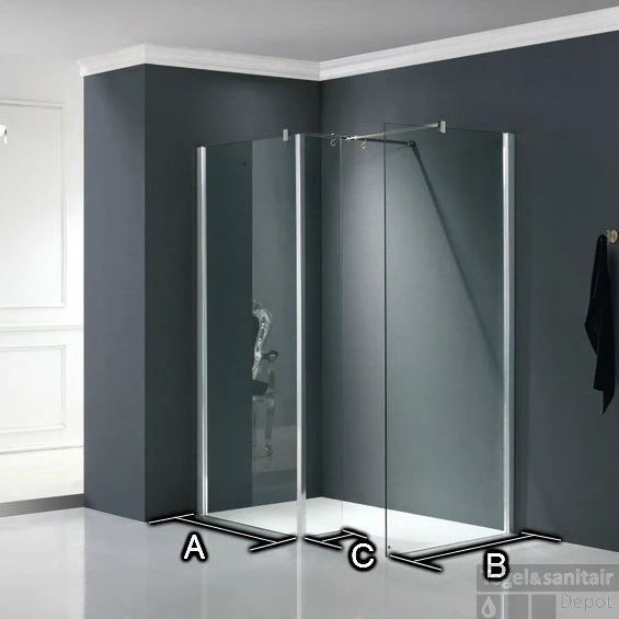 Bouw uw eigen inloopdouche combinatie van 3 wanden, maak hier beneden uw keuze uit wanden A, B en Zijwand C