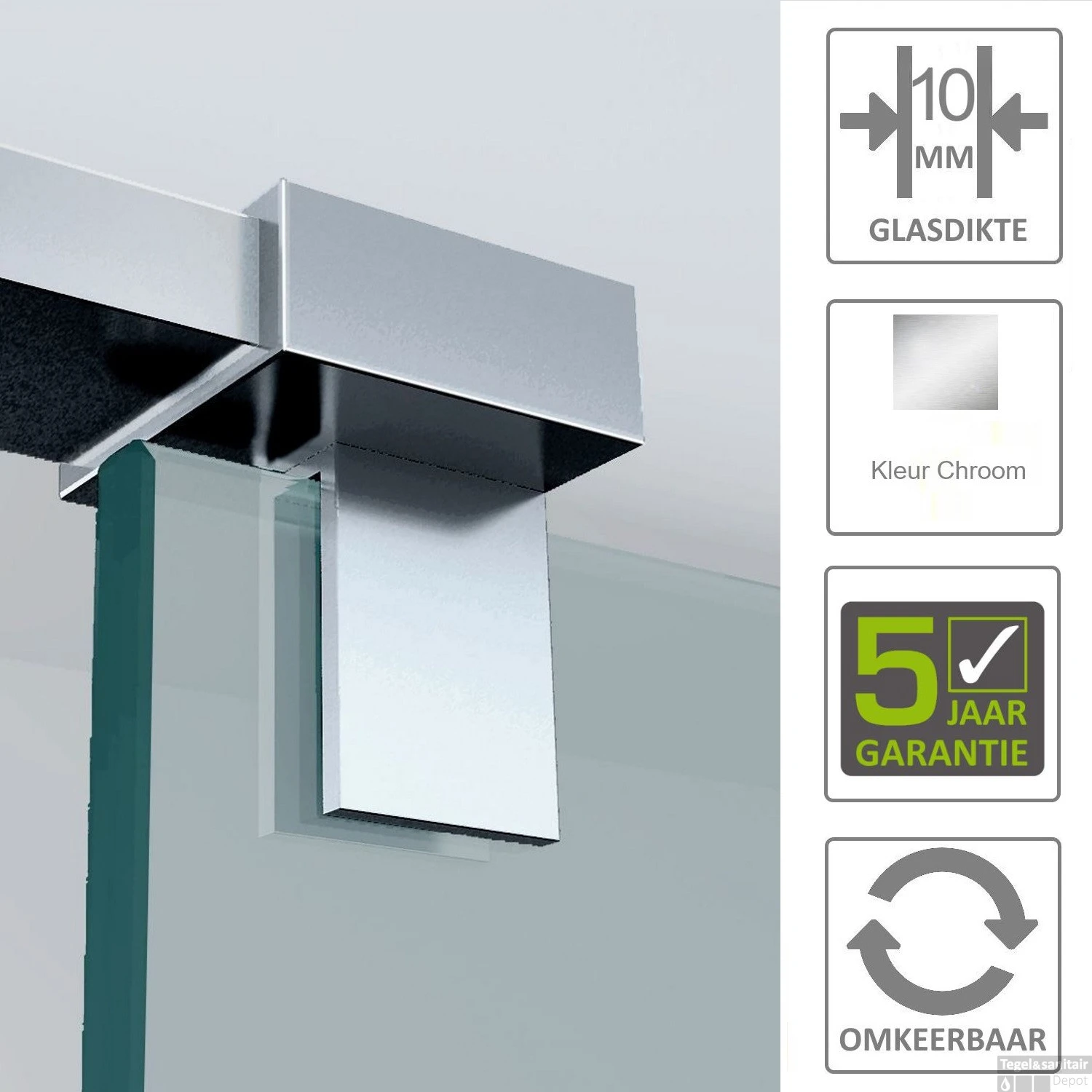 - – Geschikt voor glaswanden tussen de 0.6 cm – 1 cm dikte