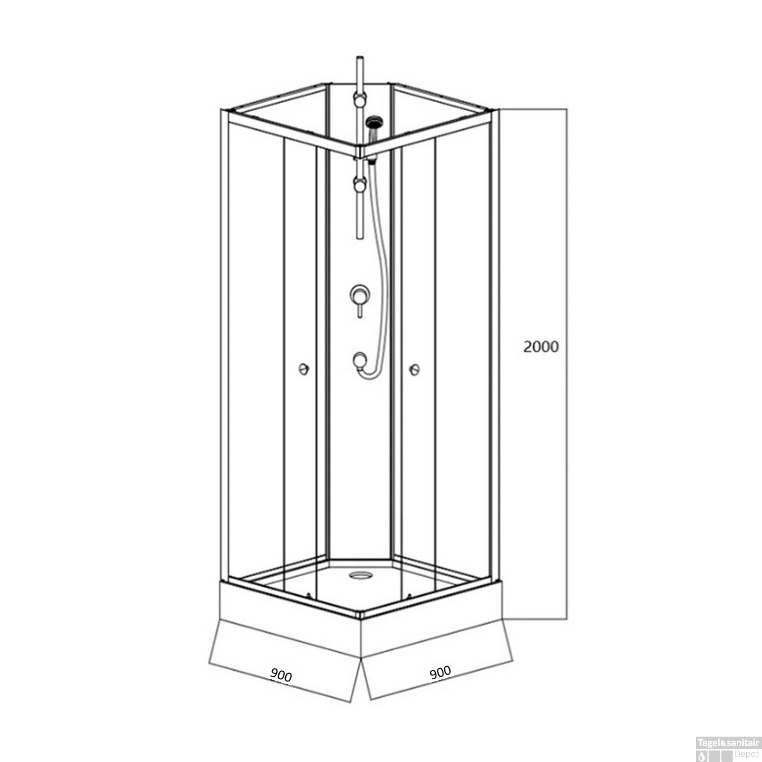 Specificaties Complete Douchecabine VM Khone II 90x90x207 cm Hoekinstap Mat Wit: