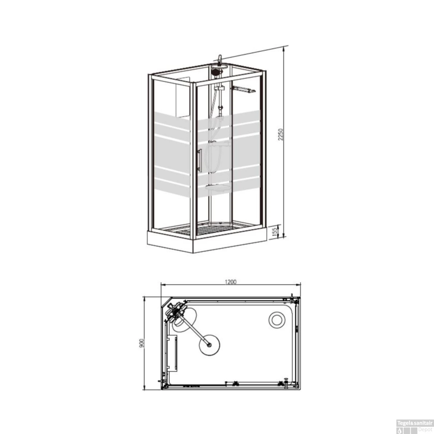 Complete Douchecabine Wiesbaden Thermo 120x90x218 Cm 5mm (Links)