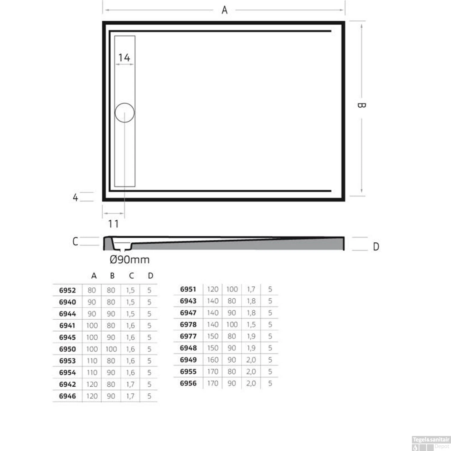 Specificaties Douchebak rechthoek zelfdragend Easy Tray 90×90 Wit Glans
