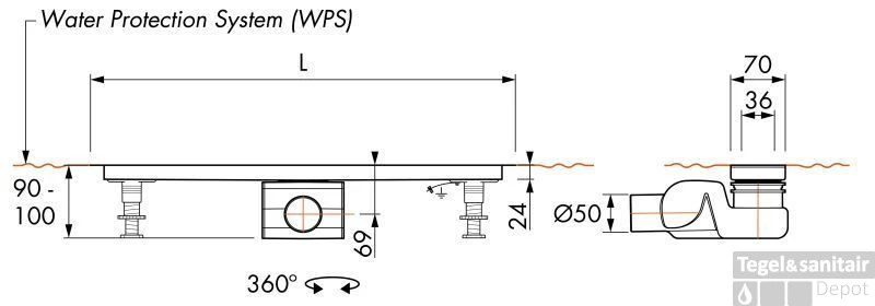 Easydrain Xs Taf Douchegoot 170 Cm. Met Rooster Z1 Waterslot 50mm. Rvs Geborsteld
