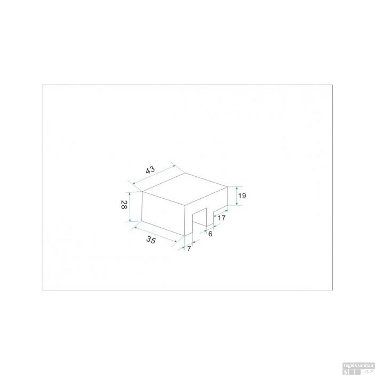 De haakse glaskoppeling is te gebruiken voor stabilisatiestangen met een doorsnede van 3 bij 1 cm. De Haakse Glaskoppeling is geschikt voor glazen wanden tot een dikte van 12 mm.