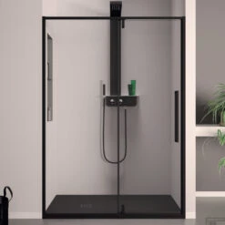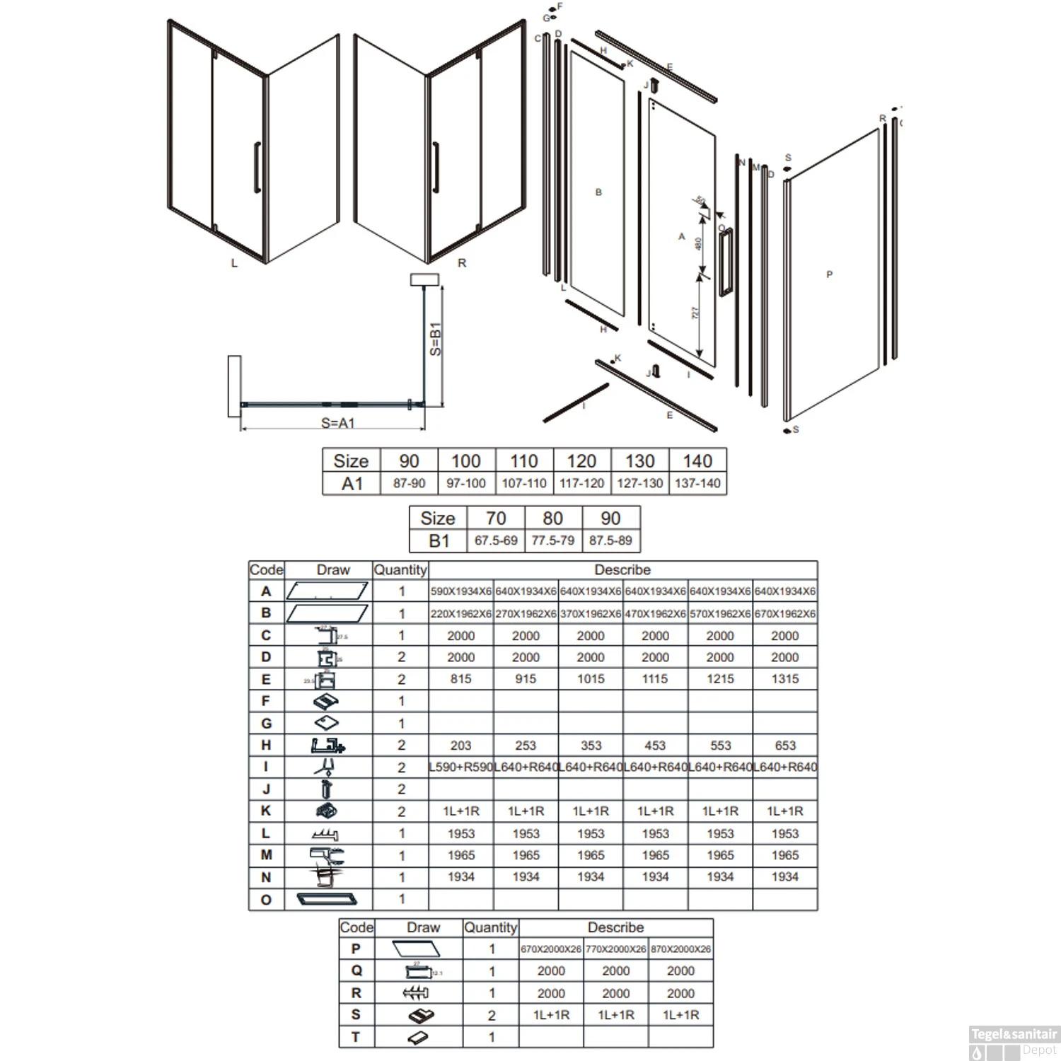 De klapdeur is voorzien van een aluminium profiel en is uitgevoerd in de kleur zwart. De douchedeur heeft een standaard hoogte van 200 cm, terwijl de glasdikte 6 mm bedraagt. De glaswanden van dit artikel zijn voorzien van een anti-kalk coating die ervoor zorgt dat kalk- en zeepresten zich minder snel aan het glas hechten. Desalniettemin adviseren wij om de glasplaten na een douchebeurt altijd af te spoelen met koud water en deze droog te trekken: op deze manier behoudt het glas het beste haar glans.
