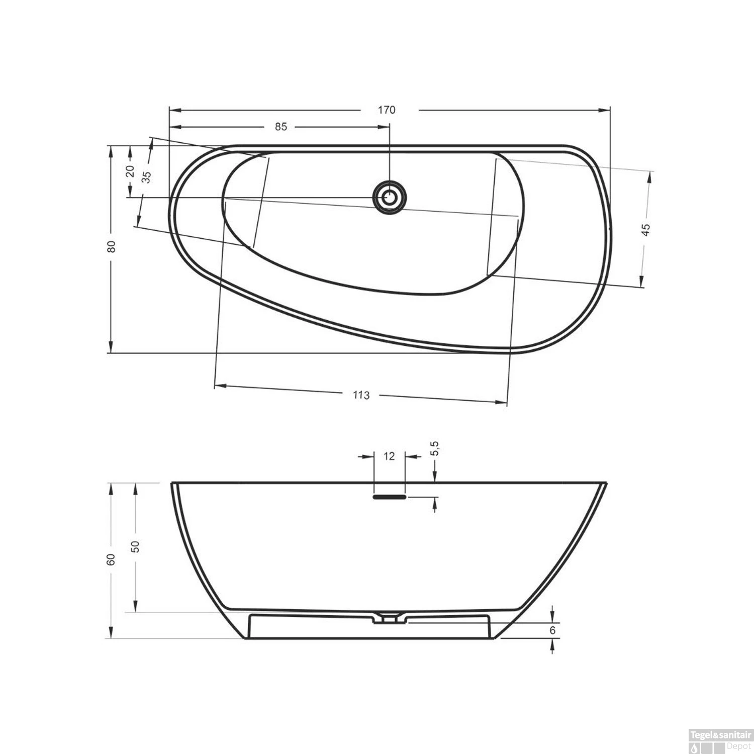 Ligbad Riho Granada Vrijstaand Rechts 170×80 Cm Mat Wit