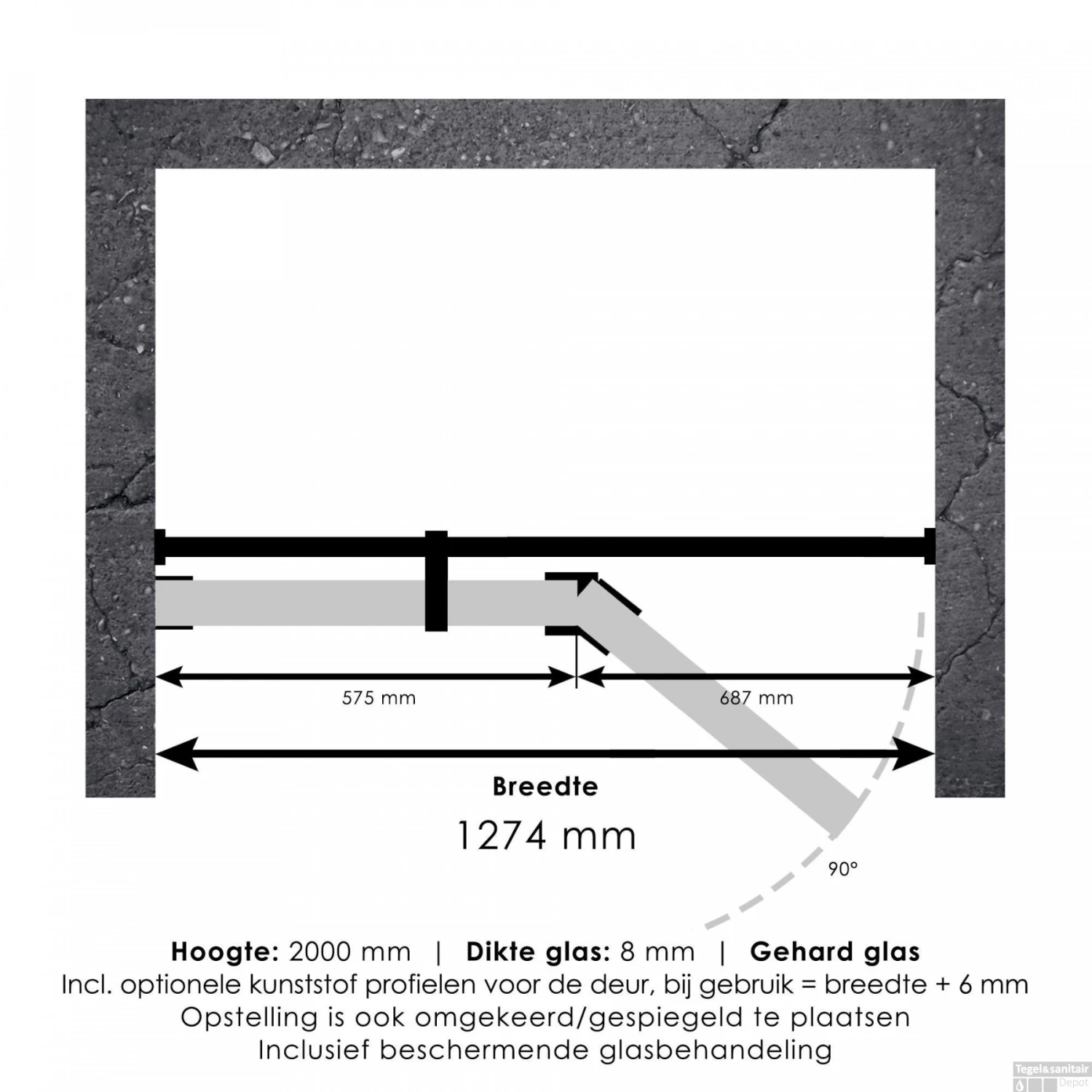 Specificaties Nisdeur Compleet Just Creating Profielloos 2-Delig (Draaideur Bevestigd op Inloopwand) 130×200 cm 60/70 Koper:
