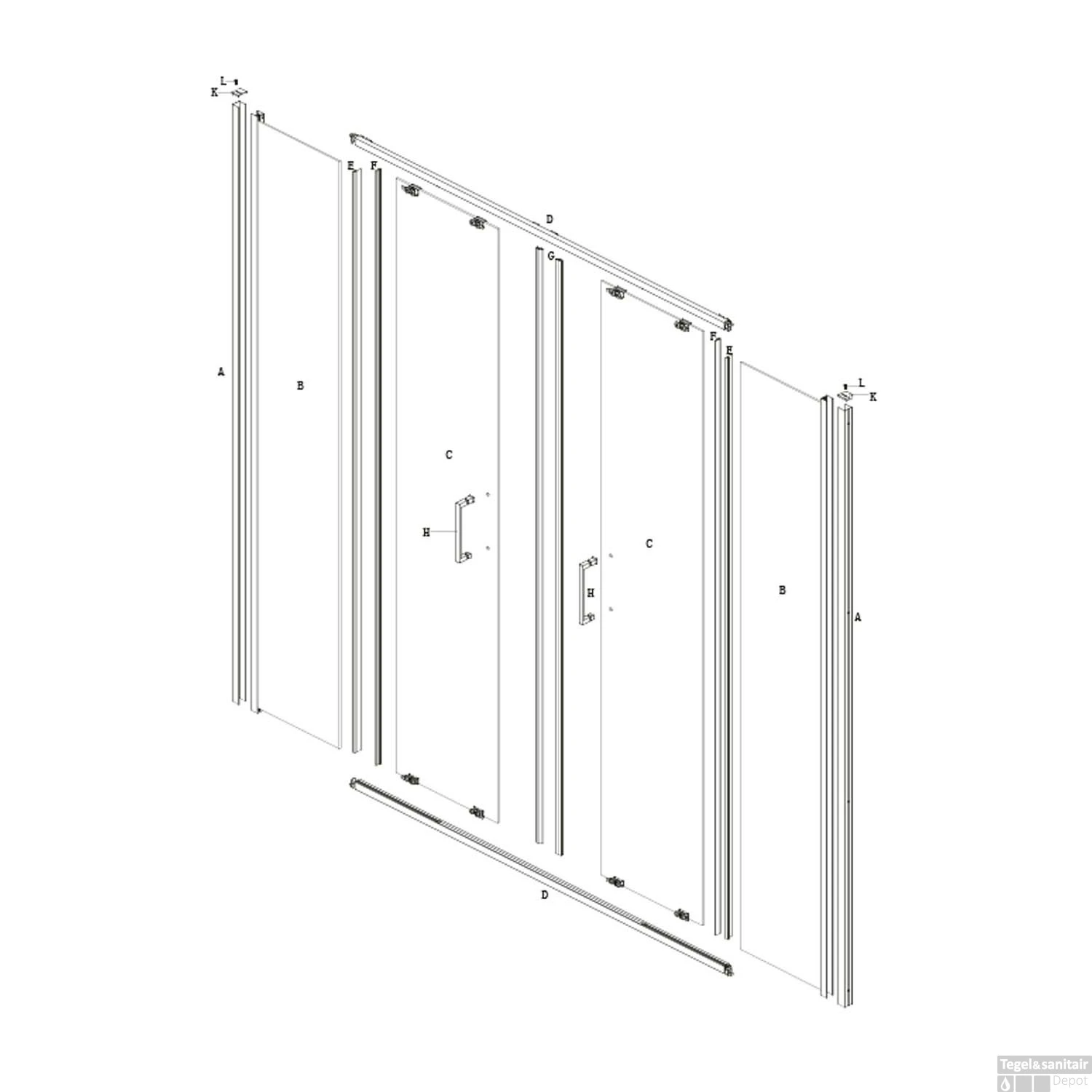 Deze nisdeur van Larcus komt uit de Stromboli serie. De deur bestaat uit vier delen. De middelste delen kunnen opgeschoven worden waardoor een brede doorgang ontstaat. De serie kenmerkt zich door zijn strakke uiterlijk en het heldere glas ook wel transparant crystal genoemd. Hierdoor ontstaat er een stijlvolle uitstraling.