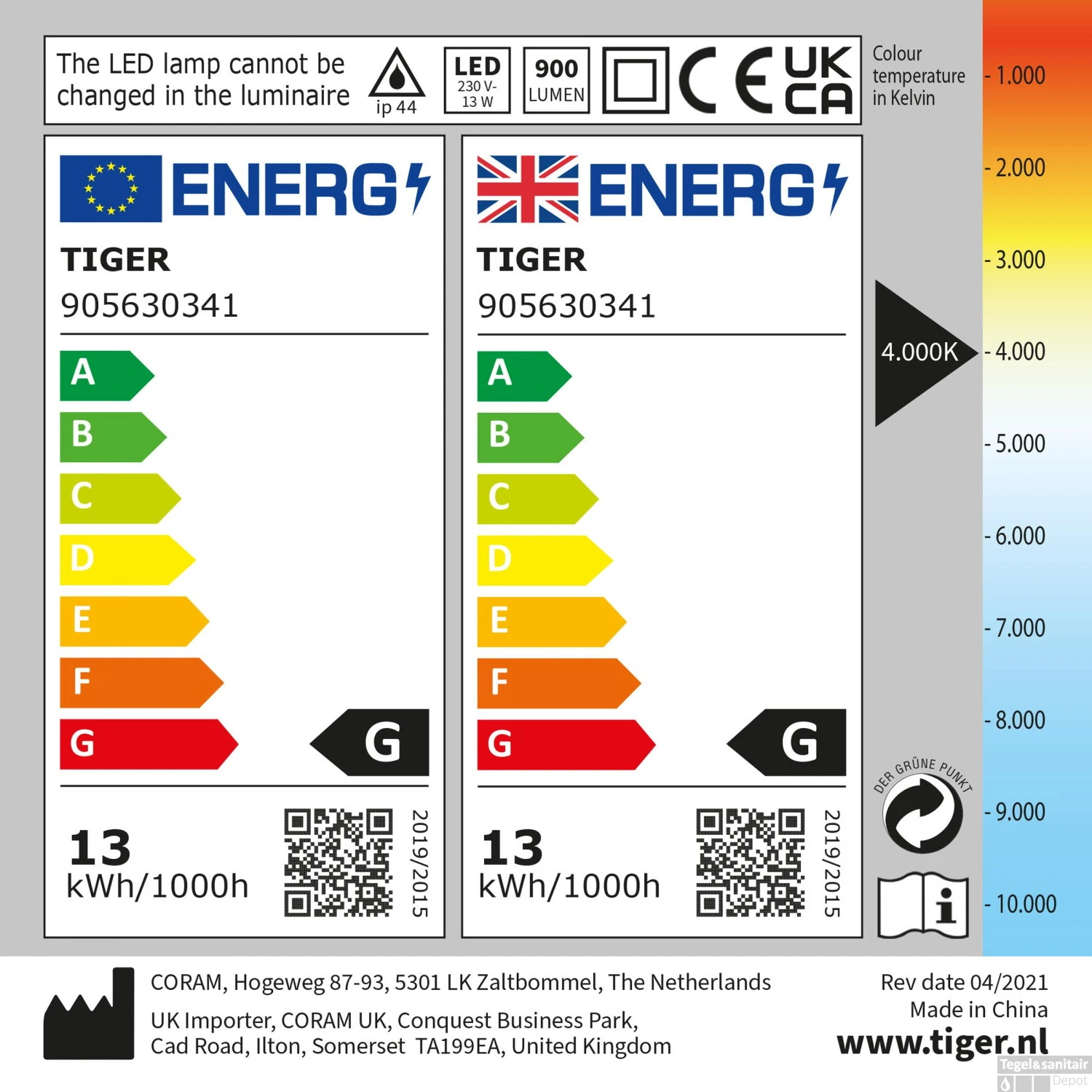 “De Tiger LED-lamp Eros is een strak vormgegeven moderne designlamp. Door de breedte van de lamp is deze uitermate geschikt om boven de wastafelspiegel te hangen. De lamp kan op 2 manieren gemonteerd worden; zowel op het meubel als op de spiegel. De lamp is uitgevoerd in de kleur chroom. De lamp is voorzien van 13.8 watt LED verlichting met geïntegreerde transformator. De lichtkleur is 4000K.