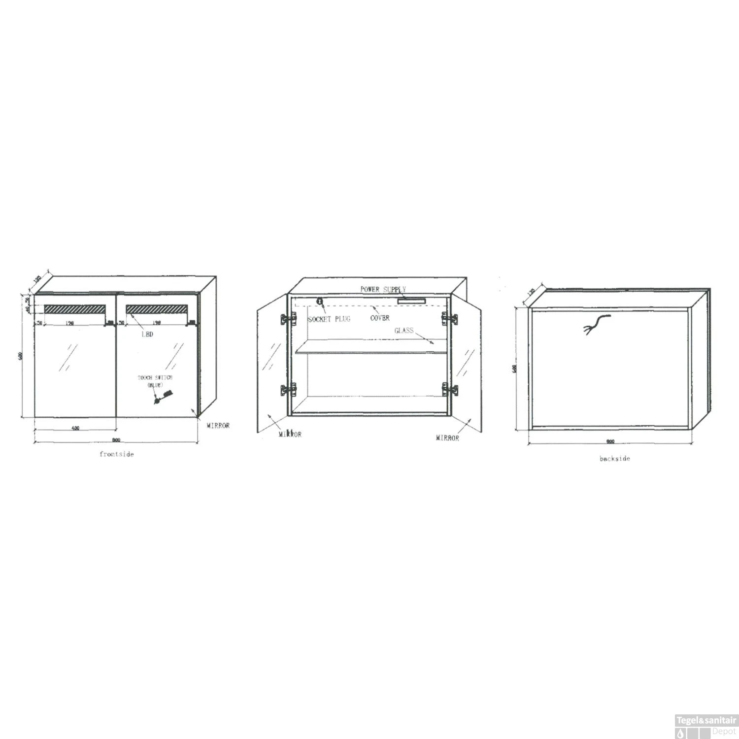 Het frame van dit exemplaar is geheel van aluminium. Dit geeft een mooi steriel uiterlijk. De spiegel is maar 4mm dik daardoor hij niet te veel naar voren komt. De afmetingen van de spiegelkast zijn 60 cm hoog, 80 cm breed en 13.5 cm diep zodat u genoeg persoonlijke spulletjes kunt opruimen.