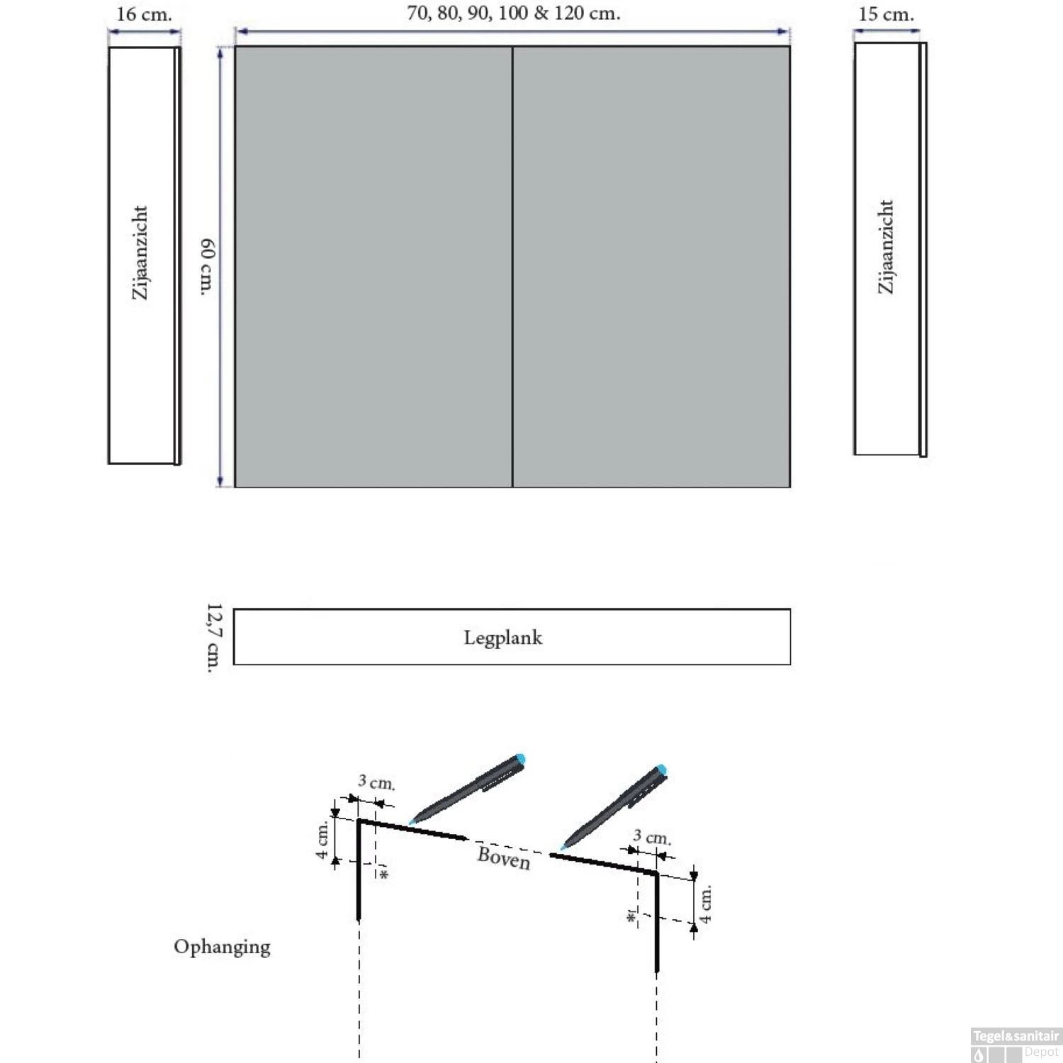 Specificaties Spiegelkast Sanicare Qlassics Ambiance 90 cm 2 Spiegeldeuren Belluno Eiken