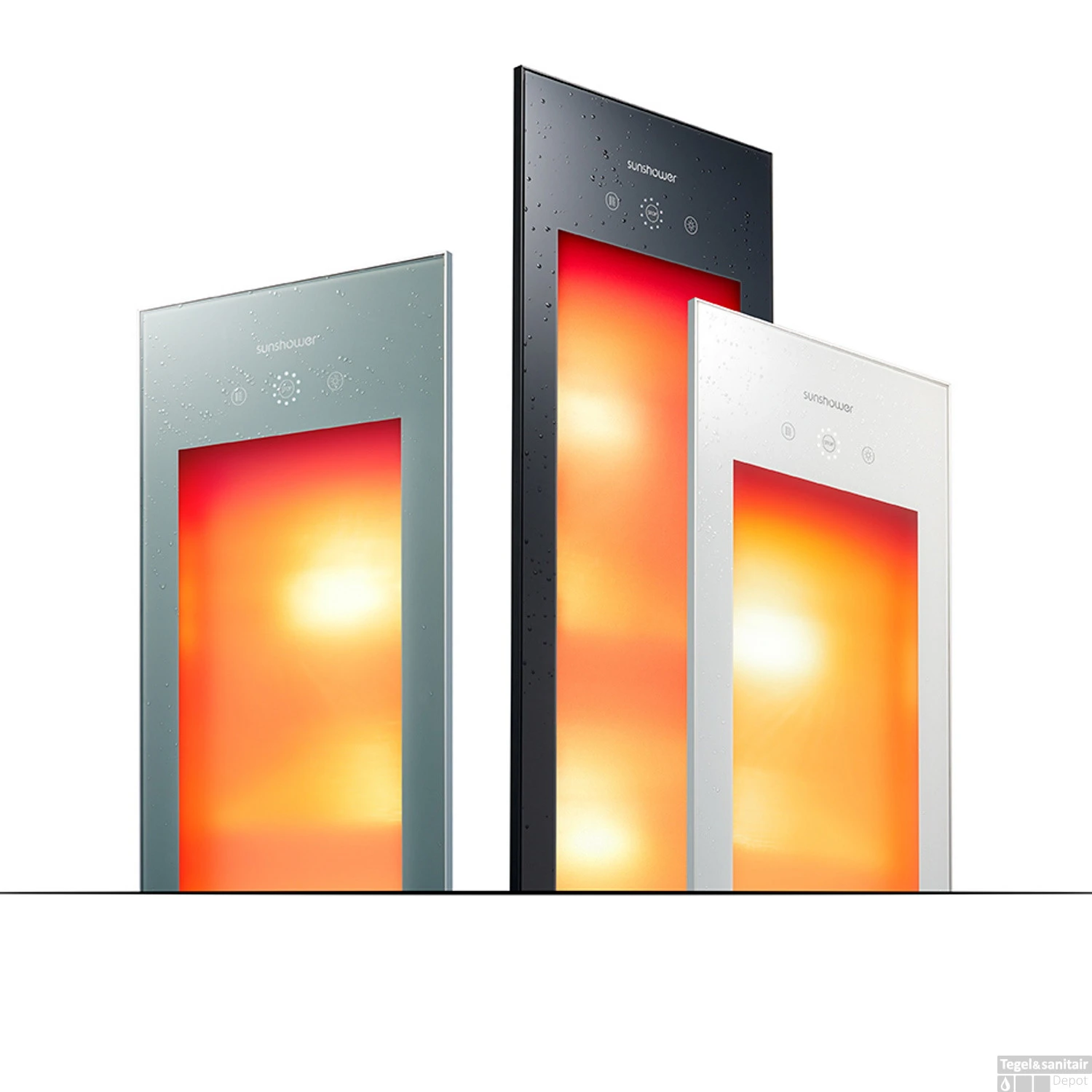 De Sunshower Pure 2.0 Organic Grey is een half body apparaat met een korte golf infrarood lamp van 1250W. Het apparaat wordt volledig weggewerkt in de wand. De Sunshower Pure 2.0 Organic Grey is afgewerkt met een gezandstraald glasplaat en heeft een smalle, opstaande aluminium rand.