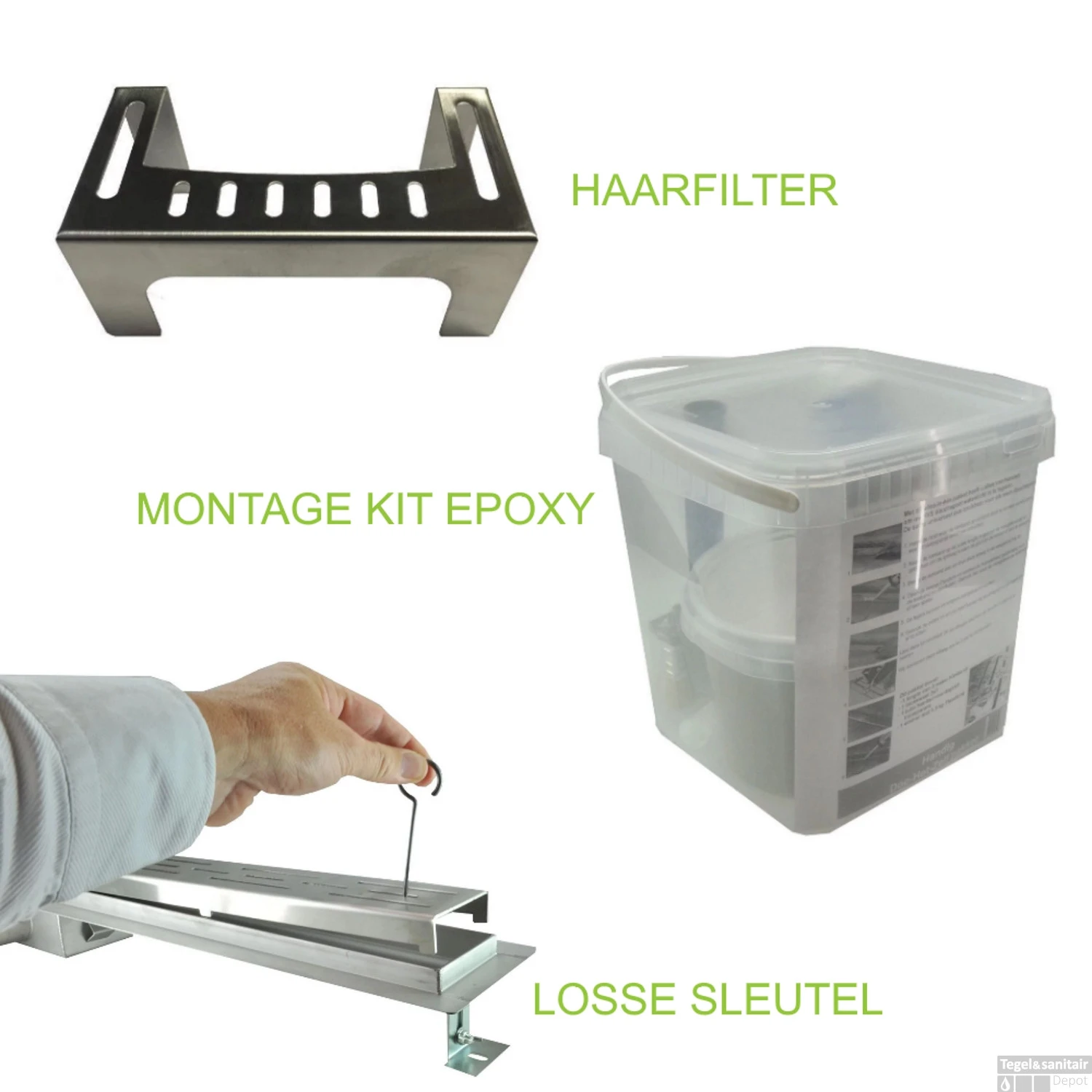 - – Haarfilter voor het schoonhouden van het sifon